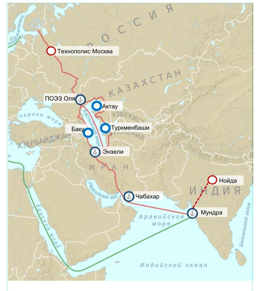 самый короткий логистический маршрут из Индии в Европу — международный транспортный коридор «Север — Юг»